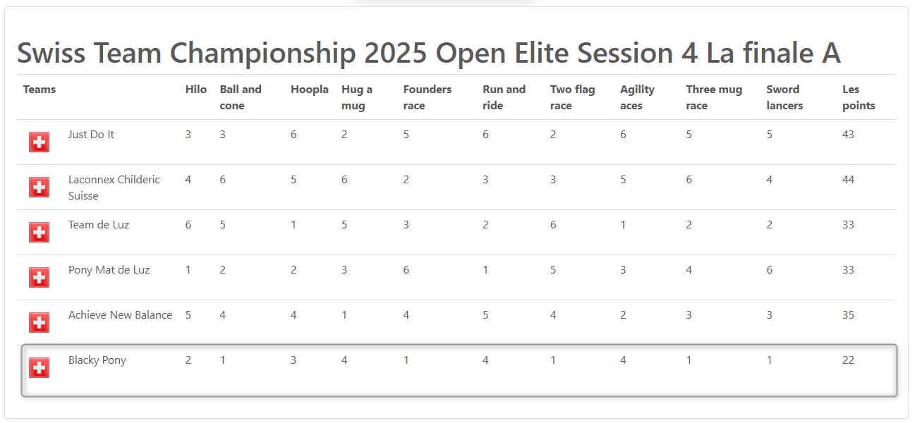 Félicitations aux équipes de l’Association Passion Pony Games pour cette saison de championnat suisse 2025